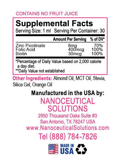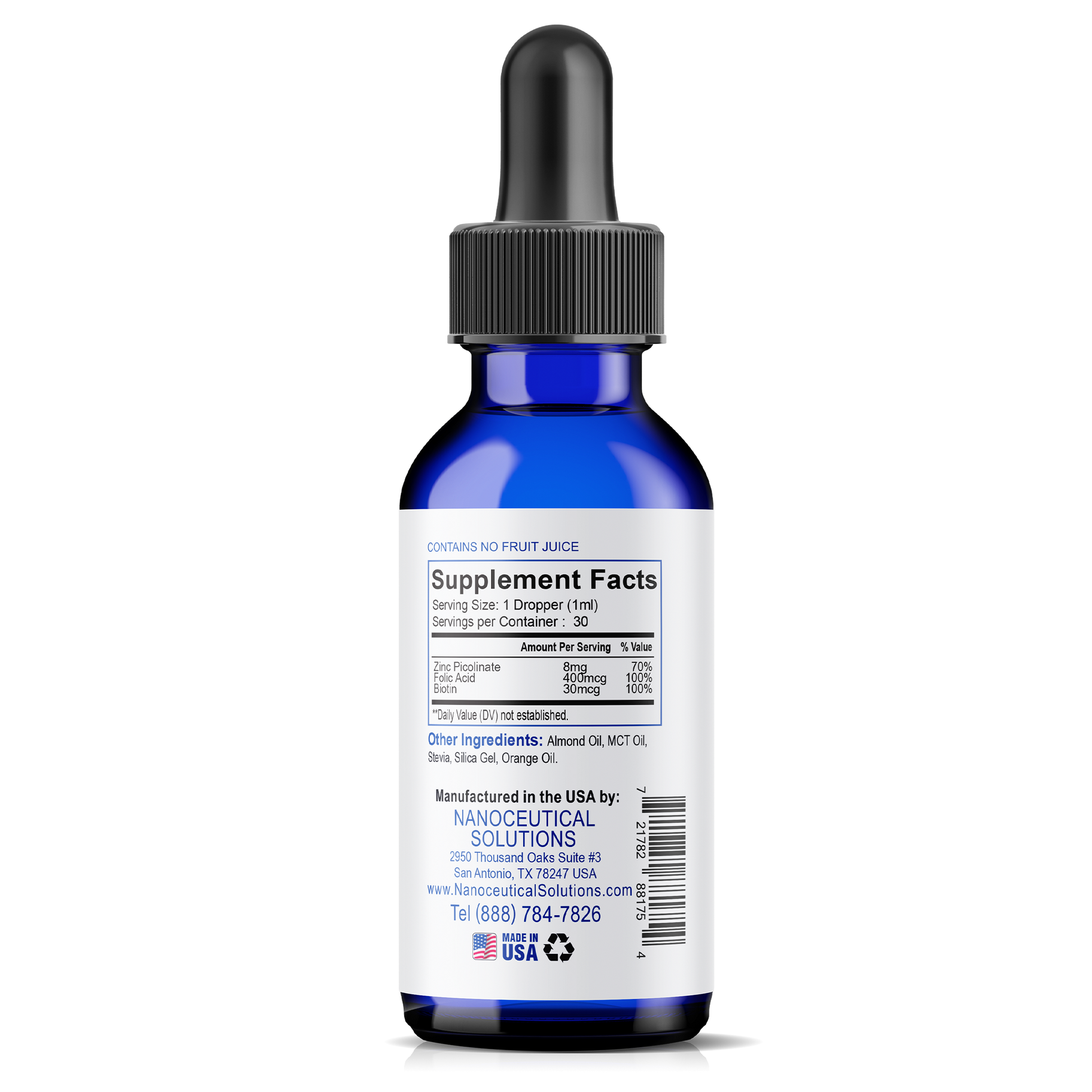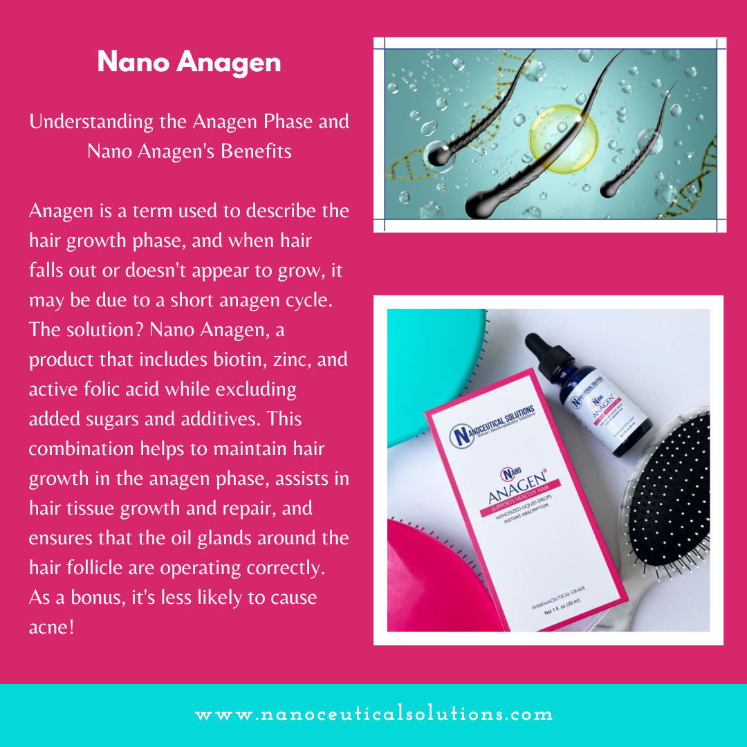 The word anagen refers to the growth phase of the hair cycle. When hair doesn’t seem to grow or constantly sheds, it may be a sign of a short anagen cycle. By combining biotin, zinc, and active folic acid (and removing added sugars and additives), Nano Anagen helps keep hair in the anagen phase, promoting hair tissue growth and repair and ensuring the oil glands around the hair follicle are functioning properly. Plus, it’s less likely to cause acne!