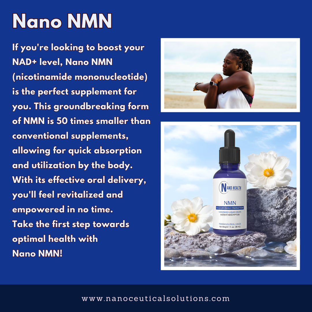 Nano NMN (nicotinamide mononucleotide) is an ideal supplement for anyone seeking to optimize their NAD+ level. This revolutionary form of NMN is 50x smaller than traditional supplements, allowing your body to quickly absorb and put it to use! Its efficient oral delivery leaves you feeling energized and empowered. Jumpstart your journey to better health with Nano NMN!