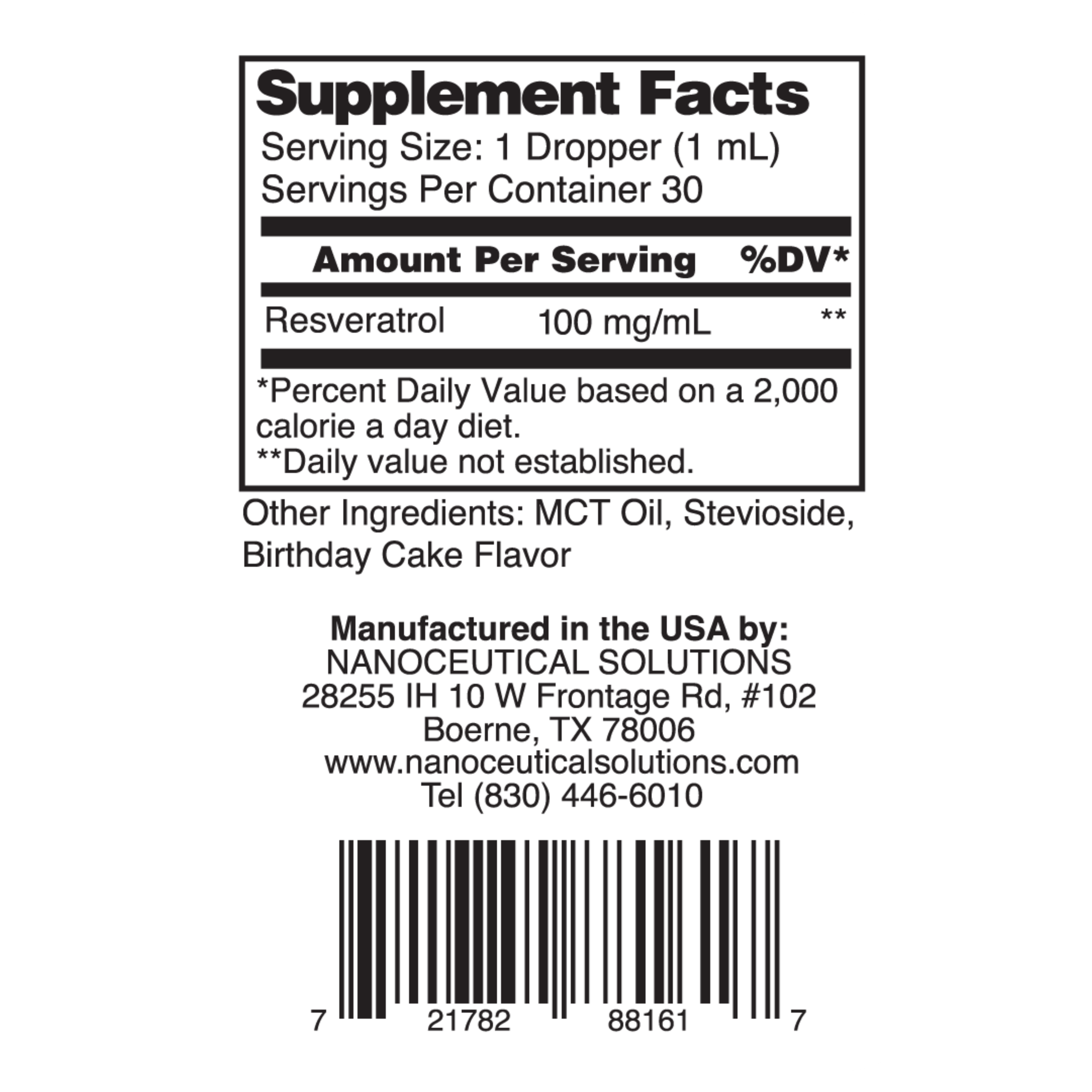 Shake the bottle well and squeeze the rubber dropper bulb to draw up 1 ml of product. Place 1ml of product in mouth and hold for 30 to 90 seconds, then swallow. Each pre-metered dropper dose (1 ml) delivers a highly absorbable and active source of Nano Resveratrol.