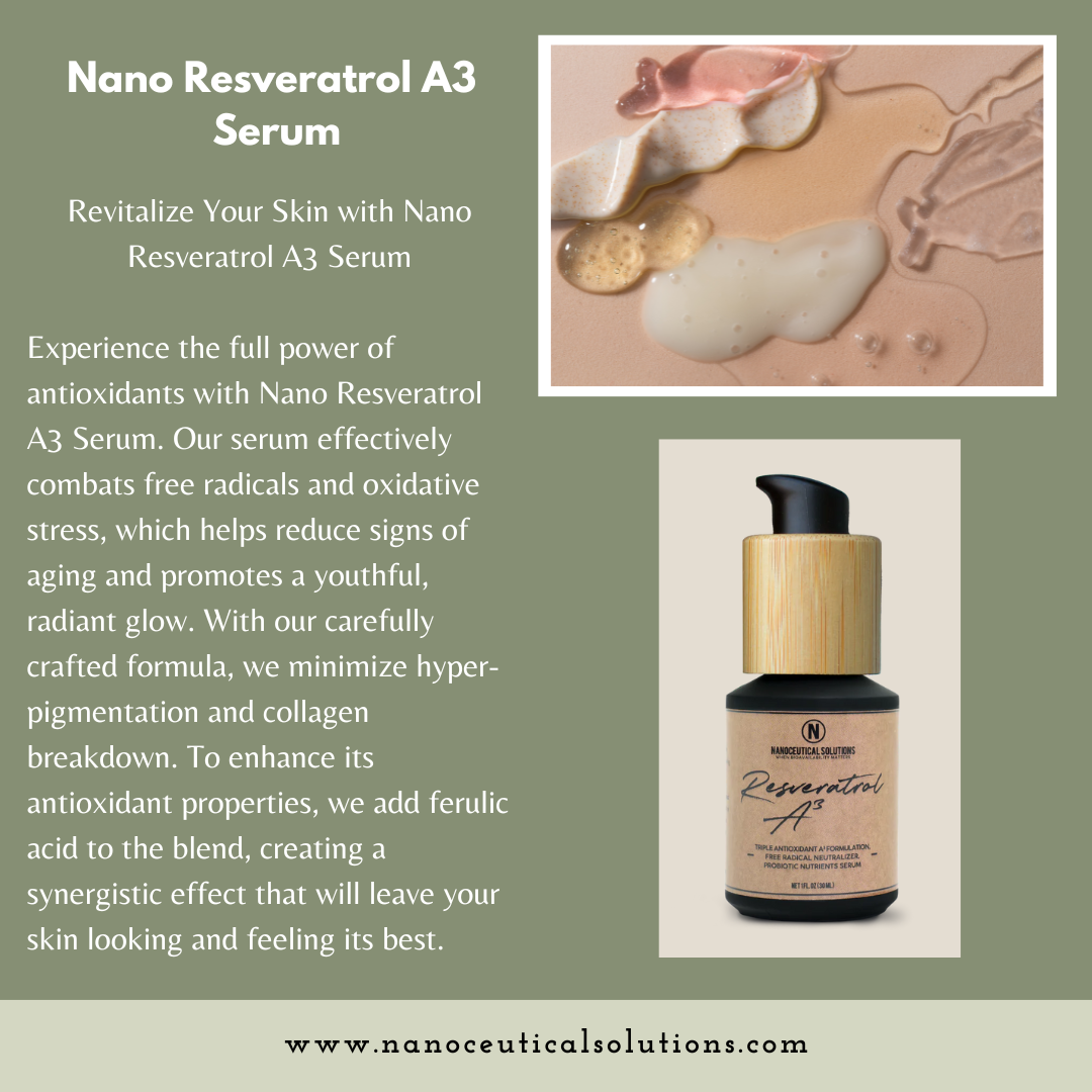 Nano Resveratrol A3 Serum is a powerhouse of antioxidants that help fight off free radicals and oxidative stress, addressing signs of aging and helping you look young and radiant.